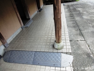後付けスロープあり。しかし、急なため、車いす自力では無理。