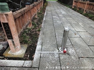 車入らないように、ポールとチェーン。だけど、邪魔。