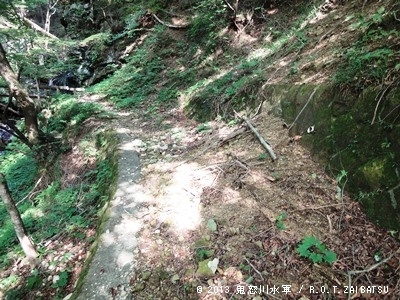 確かに崩れてる。けどこの先から滝の音がする。