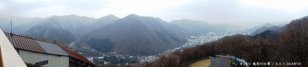 展望台から鬼怒川温泉街をパノラマ。
