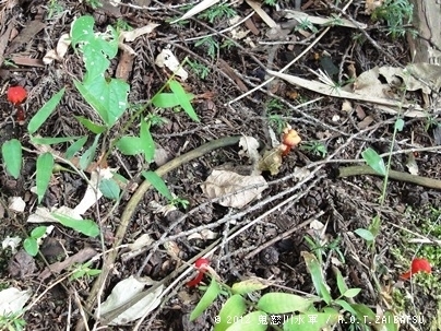 毒っぽいキノコ群。
