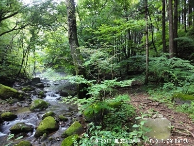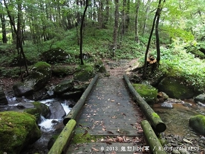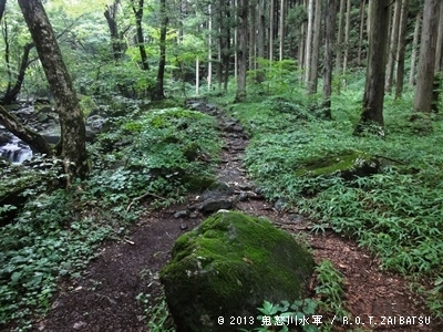 苔ビッシリ岩の横を通ります。