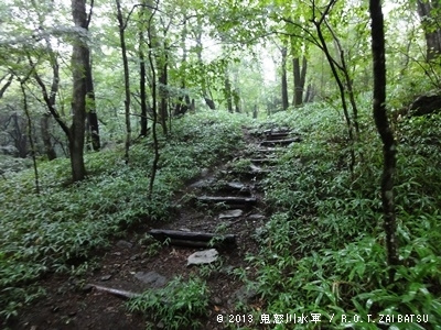 新旧遊歩道。木の方は滑るので気を付けて。